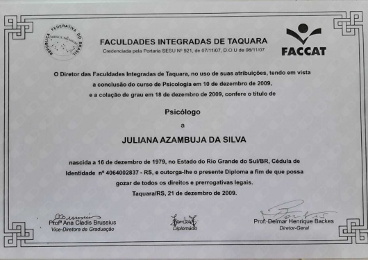 - Faccat - 2009; Graduação em Psicologia